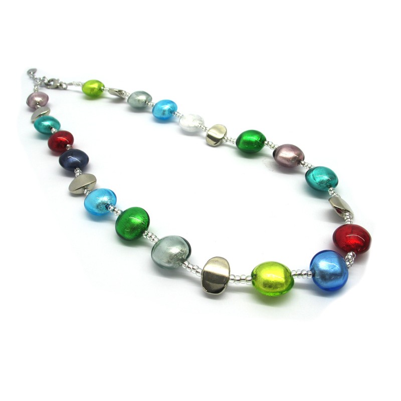 Náhrdelník z muránského skla, mod. Francesca (50 cm) z korálků o průměru 14 mm, k dispozici v 5 barvách, s vložkami z fólie, ve stříbře 925 a zlatě 24 kt, vyrobený výhradně ručně muránskými sklářskými mistry technikou lampwork v naší továrně v Muranu v Benátkách – Itálie.